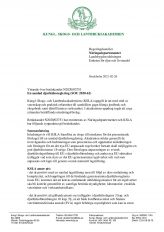 KSLA vill framföra en eloge till utredaren för det presenterade förslaget till en samlad djurhälsoreglering. Akademien stöder generellt de överväganden och bedömningar som presenteras och uppskattar målsättningen och förslagen för att det nya EU-anpassade regelverket fortsatt skall möjliggöra en god djurhälsostatus i Sverige. Den föreslagna anpassningen av svensk djurhälsolagstiftning till EU:s djurhälsoförordning och andra nya EU-rättsakter tydliggör vad som styrs av det EU-gemensamma regelverket och vad som anpassats och lagts till genom svensk nationell lagstiftning.